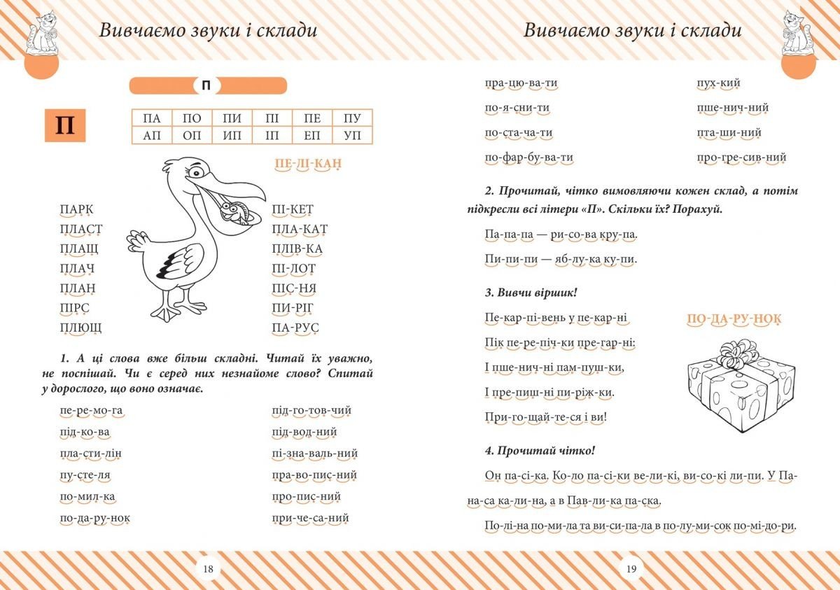 Тренажер, який сприяє розвитку навичок читання. Сформовано за принципом поступового ускладнення складів і слів. 64 сторінки. Мова: український.