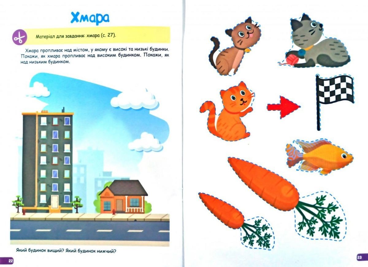 Цікава книга-збірник для дітей 2-3 років, завдання якого спрямовані на розвиток у дитини інтересу до математики на ранньому етапі розвитку. В процесі гри у дитини сформується уявлення про кількість предметів (один - багато), величиною (великий - маленький, високий - низький, довгий - короткий), форму предметів. Працюючи з цією книгою, дорослий навчить дитини орієнтуватися на аркуші паперу, завдяки аплікацій. Вирішуючи завдання, малюк проявить мовну активність, поступово почне позначати словами властивості предметів, опанує вміння робити вибір з двох предметів, навчитися узагальнювати, вирішувати практичні завдання. М'яка обкладинка. 32 сторінки. Мова: український.