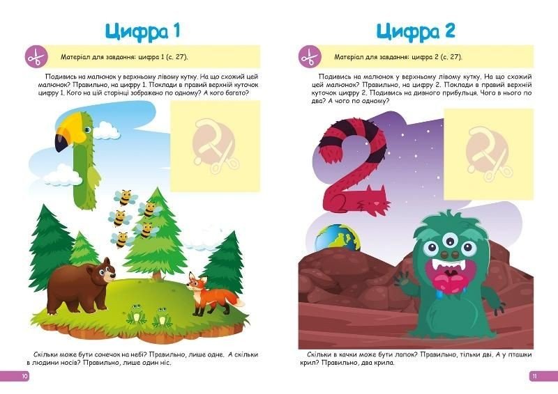 Цікава книга-збірник для дітей 3-4 років, завдання якого спрямовані на розвиток у дитини інтересу до математики на ранньому етапі розвитку. В процесі гри у дитини сформується уявлення про форму предметів, він ознайомиться з цифрами та навчиться з ними взаємодіяти, вважати. Працюючи з цією книгою, дорослий навчить дитини орієнтуватися на аркуші паперу, завдяки аплікацій. Вирішуючи завдання, малюк проявить мовну активність, поступово почне позначати словами властивості предметів, опанує вміння робити вибір з двох предметів, навчитися узагальнювати, вирішувати практичні завдання. М'яка обкладинка. 32 сторінки. Мова: український.