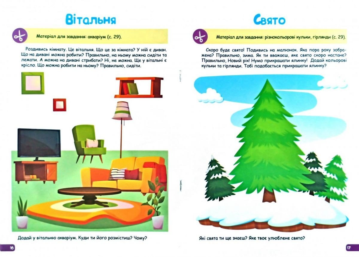 Цікава книга-збірник для дітей 2-3 років, завдання якого спрямовані на розвиток мови у дитини. Граючи, малюк навчиться характеризувати предмети за кількістю, формою, кольором і розміром. дитина буде розвивати вміння відповідати на питання не тільки окремими словами, а й цілими фразами, збагатить свій словниковий запас. А завдяки аплікацій - опанує навичками орієнтації в просторі. Мʼяка обкладинка. 32 сторінки. Мова: український.