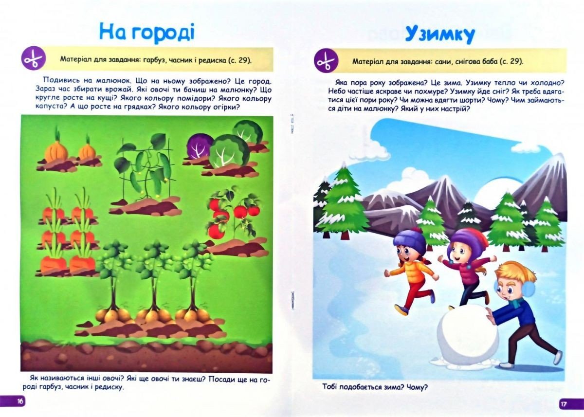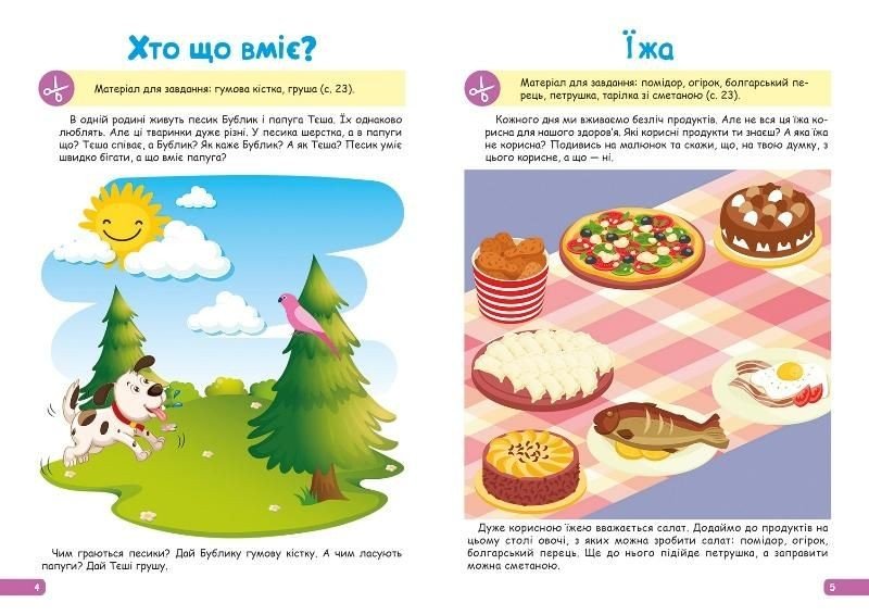 Цікава книга-збірник для дітей 3-4 років, завдання якого спрямовані на розвиток мови у дитини. Граючи, малюк навчиться характеризувати предмети за кількістю, формою, кольором і розміром. дитина буде розвивати вміння відповідати на питання не тільки окремими словами, а й цілими фразами, збагатить свій словниковий запас. А завдяки аплікацій - опанує навичками орієнтації в просторі. Мʼяка обкладинка. 32 сторінки. Мова: український.