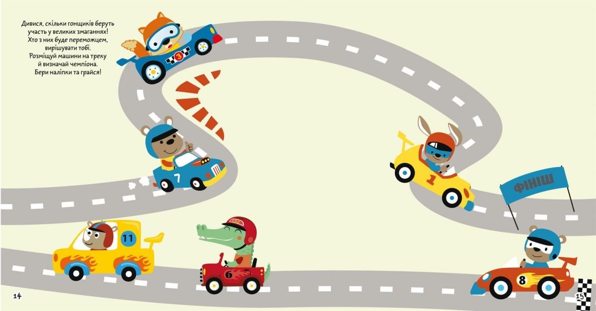 Опис Книга "Розмальовки, аплікації, завдання. Великі перегони"