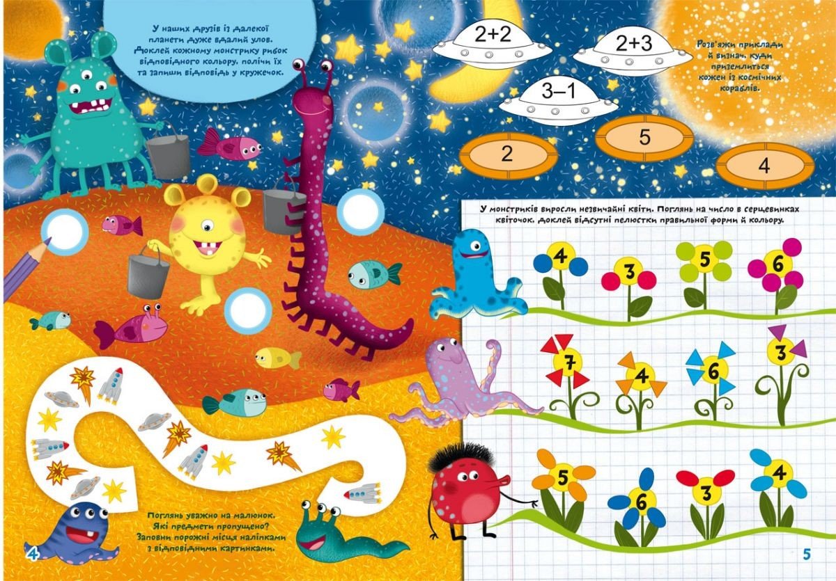 Книга "Школа почемучки. Математика. 170 розвиваючих наклейок". Вчимося і граємо з більш ніж 100 розвиваючих наклейок. Вирішуємо цікаві і пізнавальні математичні задачки. 24 сторінки, м'яка обкладинка.