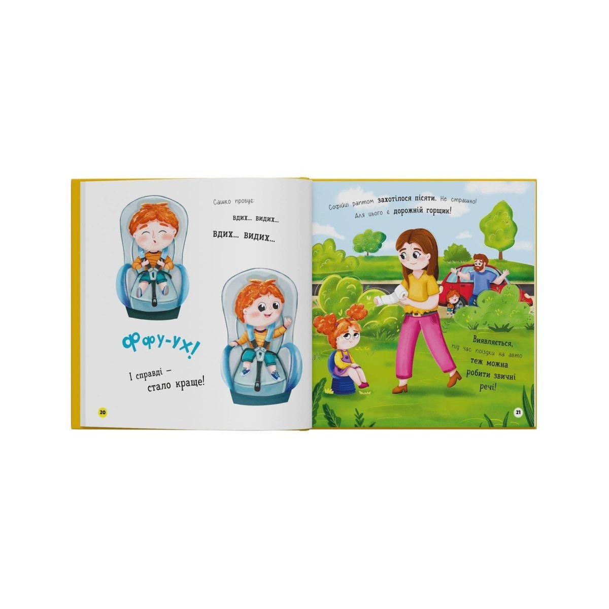 Ця інтерактивна книжка підкаже батькам, як у цікавій і доброзичливій формі допомогти дитині звикнути до поїздок на авто та навчити дотримання правил безпеки. Разом із двійнятами Софійкою та Сашком малюк дізнається, навіщо потрібне автокрісло, що робити, коли в машині нудно чи захитало, чим можна зайнятись у дорозі, і чому важливо завжди бути пристебнутим. Спостерігаючи за пригодами героїв, дитина охоче поводитиметься обачно — «за компанію». А якщо з першого разу щось не сподобається або не вдасться — не біда, адже це звична частина набуття нових навичок. Книга призначена для дітей віком від 2 років та їхніх турботливих батьків. В твердій обкладинці.