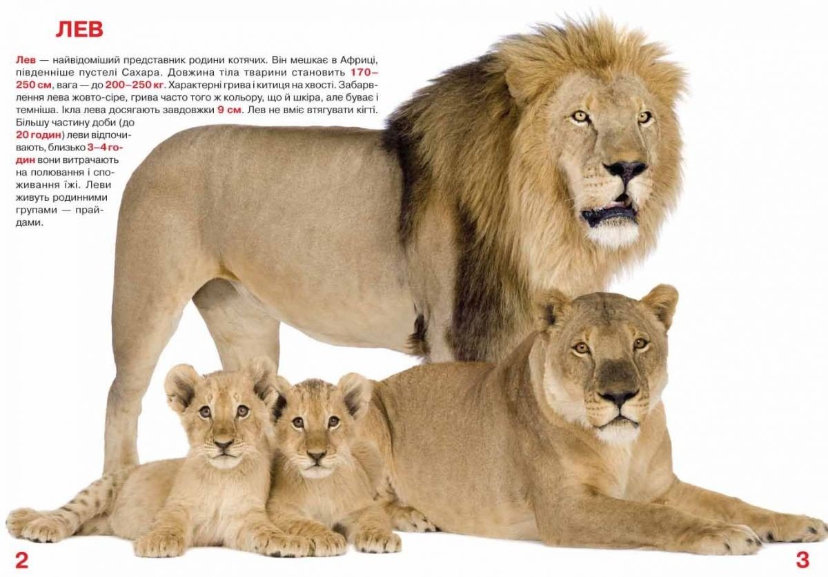 Книга "Велика книга. Дикі кішки". У ній представлені яскраві ілюстрації з описом і характеристиками різних представників сімейства котячих. 17 сторінок, м'яка обкладинка, на українському.