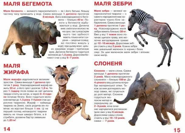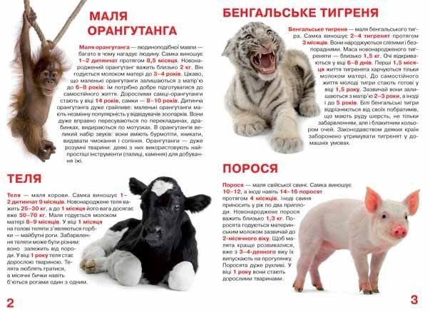 У книзі популярно розповідається про малюків різних тварин, їх зовнішній вигляд, особливості поведінки. Яскраві фотоілюстрації прекрасно доповнюють видання. 17 сторінок, м'яка обкладинка, на українському.