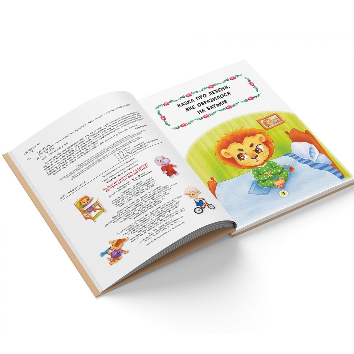 У цій книзі серії "Казки про почуття і емоції" можна знайти історії про двох звірят, які часто ображалися на інших. Левеняті та ягняті здавалося, що ними нехтують, їх не люблять і кривдять. Через це малятам було прикро, вони плакали ' почувалися нещасними. Та одного дня їхнє життя змінилося: образи зникли, звірята почали частіше посміхатися й відчули себе щасливими. Хочеш дізнатися, що сталося? Щоб розкрити таємницю, треба уважно прочитати книжку.