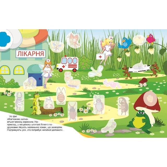 У даній серії перед дитиною відкривається казковий світ принцес, фей та модниць. Граючись з улюбленими персонажами, малюки поринуть у захопливі історії, прикрасять сторінки наліпками та створять яскраві сюжети для головних героїв. Книга створена для організації веселого дозвілля батьків із малюками. Завдання з наліпками спрямовані на розвиток фантазії, уяви, памʼяті, посидючості та дрібної моторики.