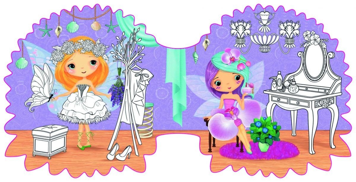 Книжечка-розмальовка "Квіткові феї" виконана у формі того чи іншого квітки. 10 сторінок. У комплекті є набір яскравих красивих наклейок.
