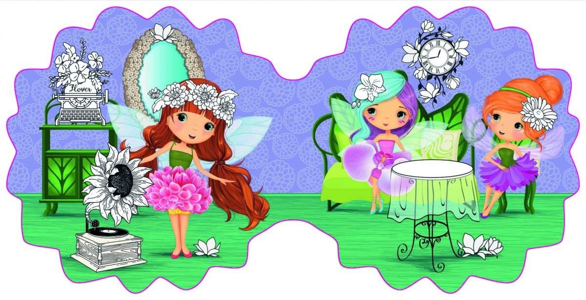 Книжечка-розмальовка "Квіткові феї" виконана у формі того чи іншого квітки. 10 сторінок. У комплекті є набір яскравих красивих наклейок.