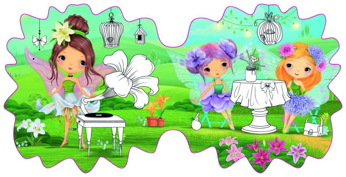 Книжечка-розмальовка "Квіткові феї" виконана у формі того чи іншого квітки. 10 сторінок. У комплекті є набір яскравих красивих наклейок.