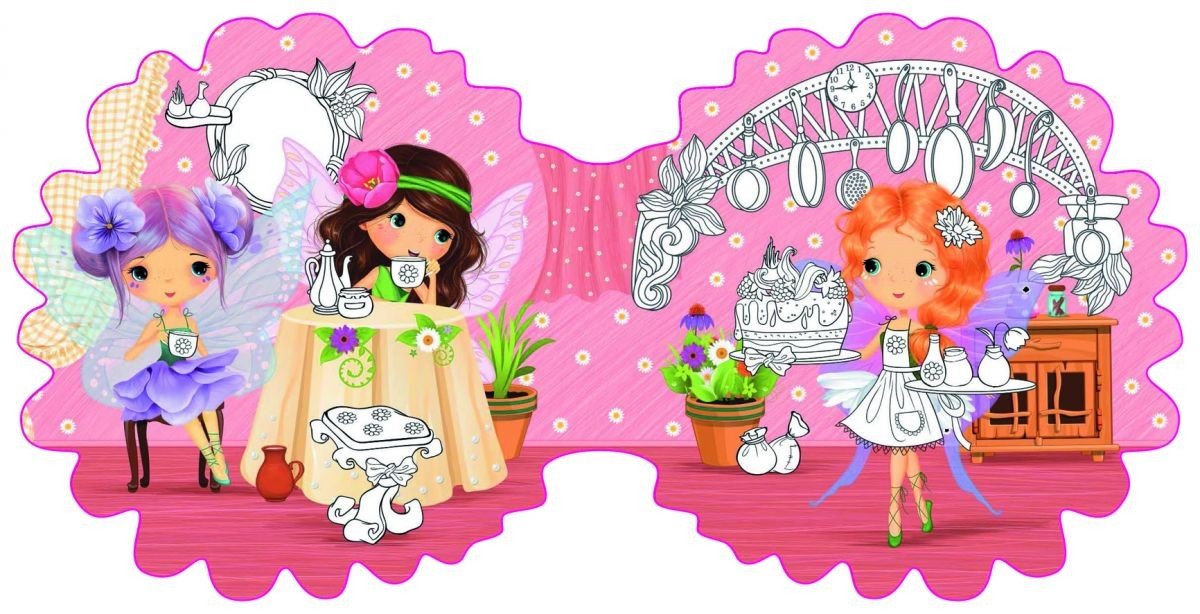 Книжечка-розмальовка "Квіткові феї" виконана у формі того чи іншого квітки. 10 сторінок. У комплекті є набір яскравих красивих наклейок.