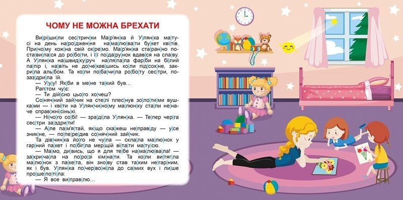Книжка із серії "Читаємо по складах" містить цікаві повчальні історії (7 оповідань). Текст досить короткий, до 150 слів. Великий шрифт. 12 сторінок в мʼякій палітурці.