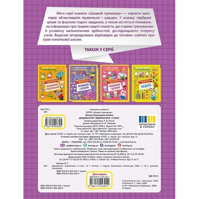 Опис Книжка: "Цікавий тренажер Додавання, віднімання. 3 клас"