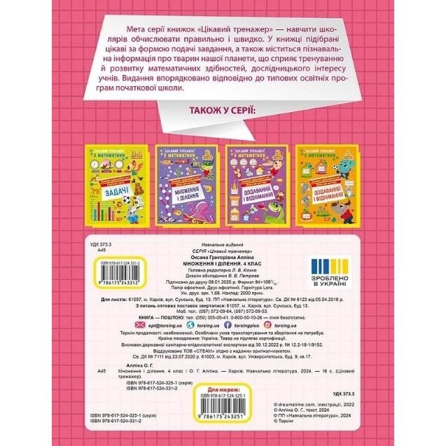 Опис Книжка: "Цікавий тренажер Множення, ділення. 4 клас"