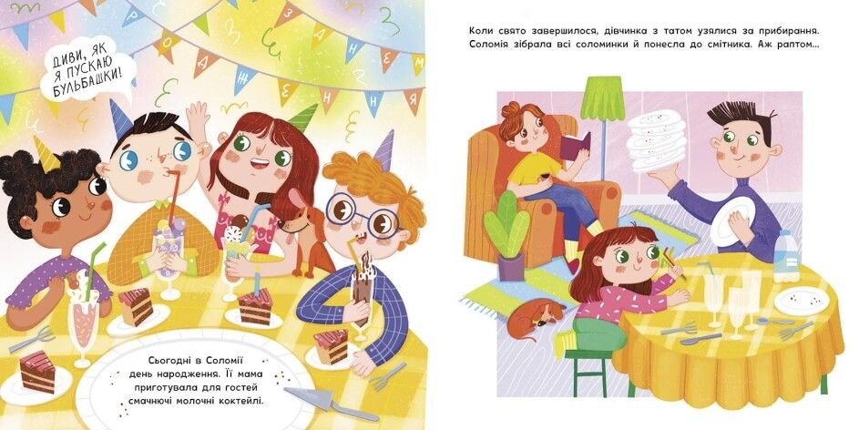 Книжки серії «Екоісторії» пояснюють дошкільникам важливість сортування й переробки сміття. Четверо подруг-соломинок подолали довгий шлях, перш ніж потрапити на святковий стіл Соломійки. І цей шлях міг би закінчитися смітником, адже дівчинка не знала, що соломинки годяться не лише для пиття коктейлів... Однак соломинки не здалися та врятували самі себе, пояснивши дівчинці, що з них можна зробити брелок, фоторамку і навіть... бігуді! В книжці 24 сторінки. В мʼякій палітурці.