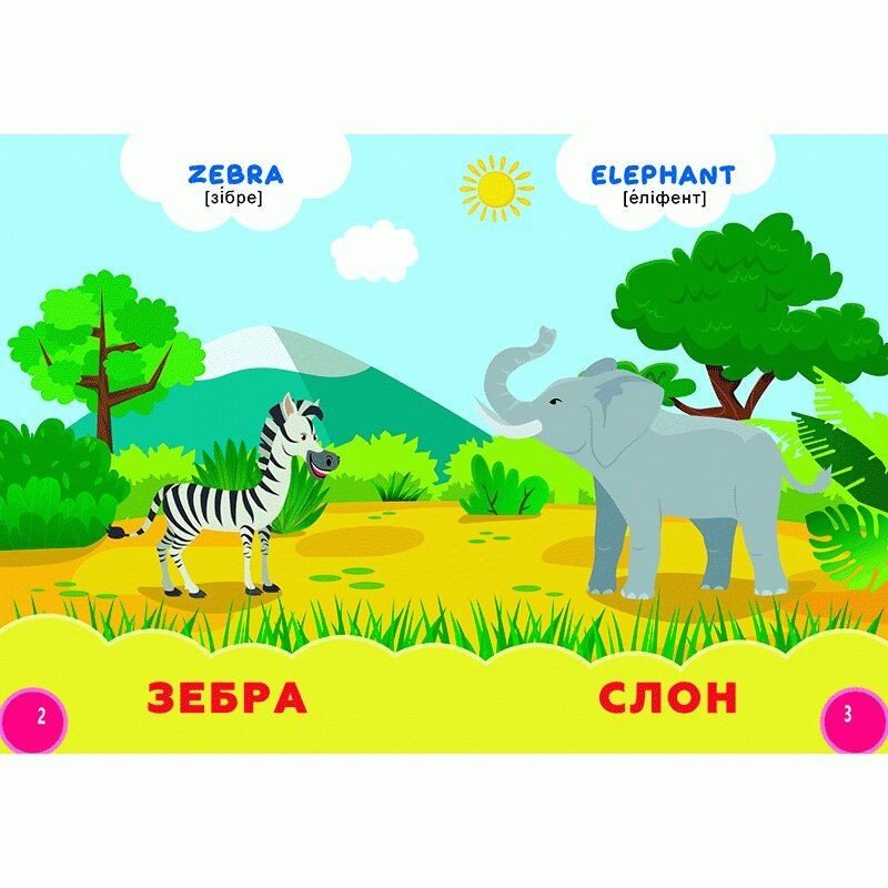 Опис Книжка картонна "Дикі тварини" + англійські слова (укр)