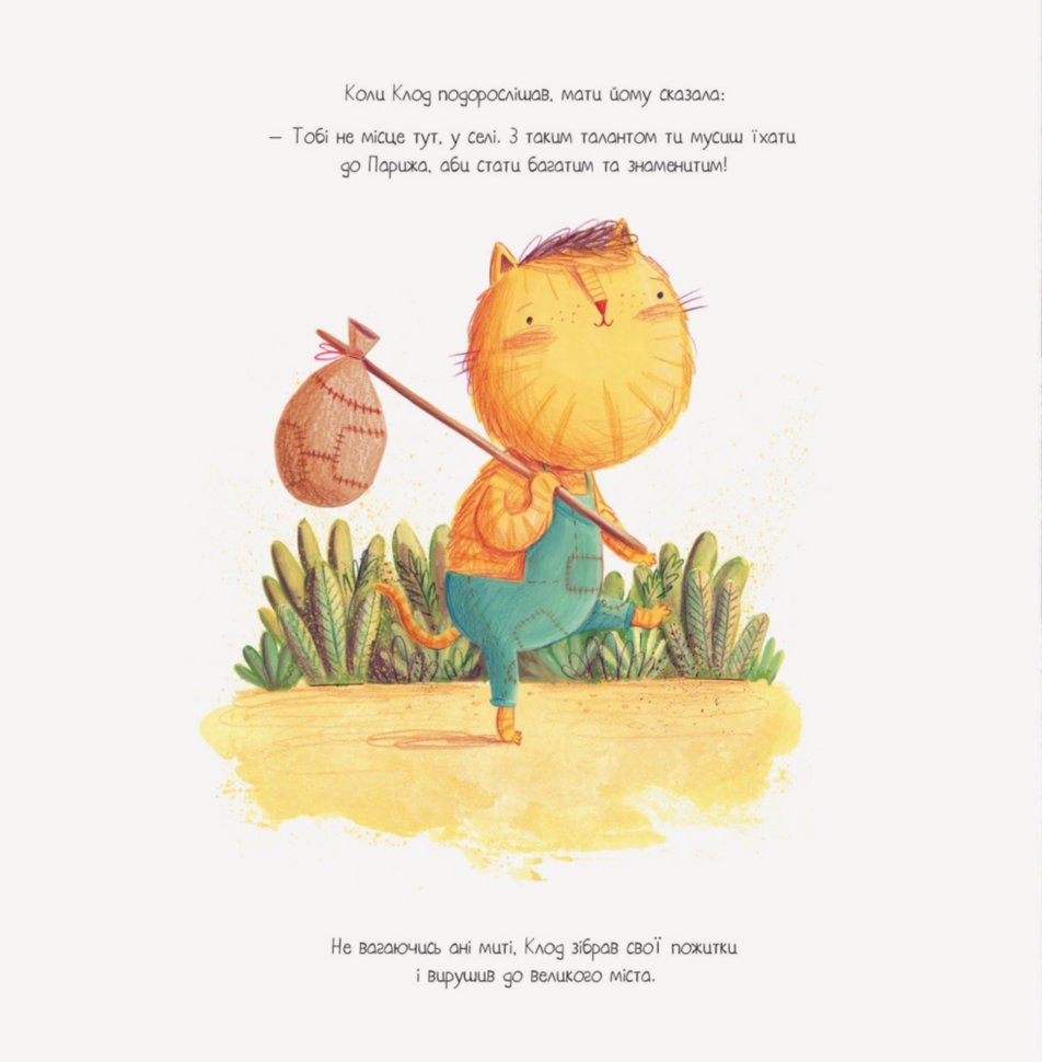 У пошуках популярності і багатства сільський кіт Клод відправляється в Париж. Але велике місто не дуже вітає молодих і нікому не відомих художників. 36 сторінок. М'яка обкладинка.