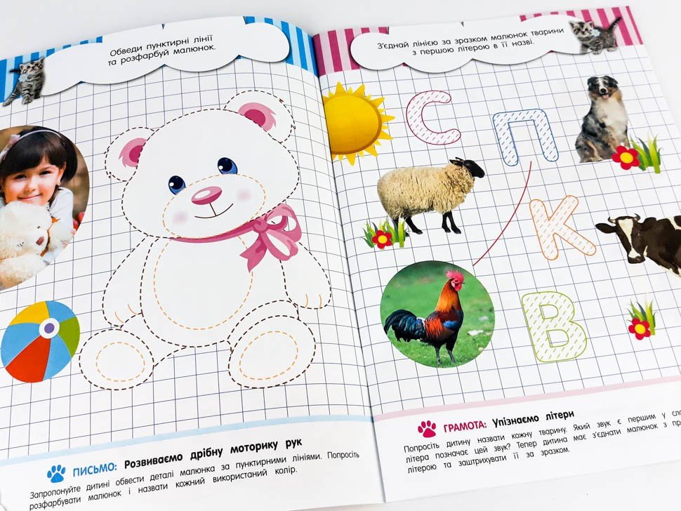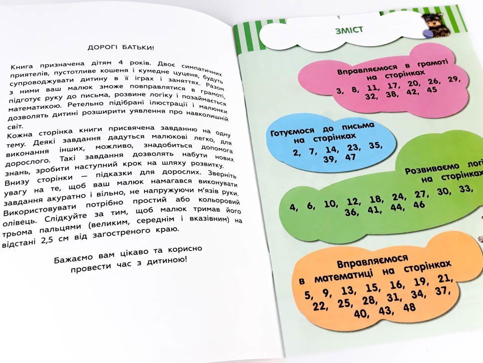 Одна сторінка - одна задача, яскраві малюнки і цікаві вправи. Внизу кожної сторінки розташовані методичні рекомендації, які допоможуть дорослому правильно зорієнтувати дитину. У цій книзі є всі типи завдань, необхідних для розвитку дитини дошкільного віку. 48 сторінок, м'яка обкладинка.