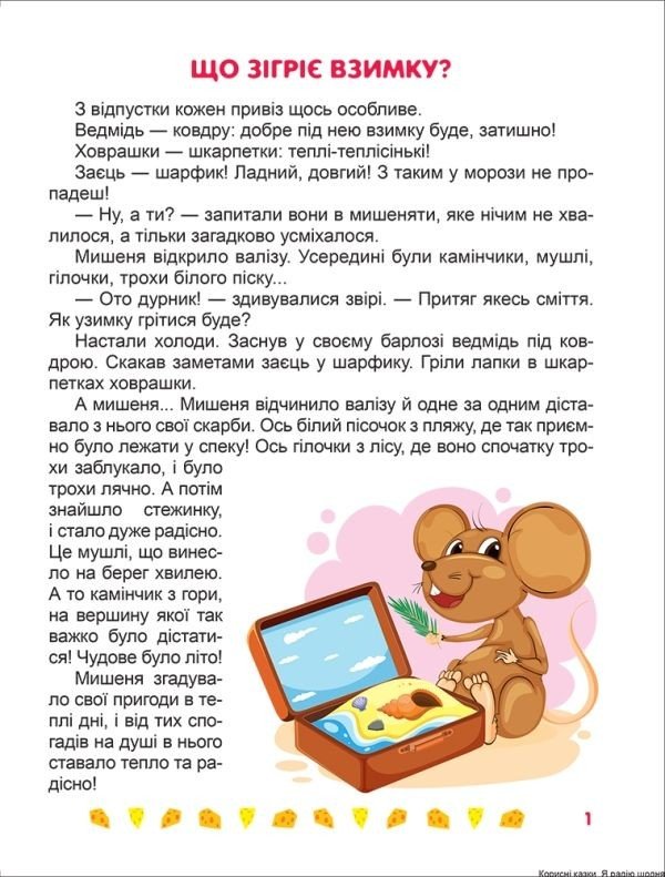 Книга з серії "Корисні казки". У книзі розміщені цікаві, повчальні, а також мотивують казки, які допоможуть малюкові розвиватися і ставати кращим (9 казок). Є також, барвисті ілюстрації до кожної з казок. Книга в мʼякій палітурці, 16 сторінок.
