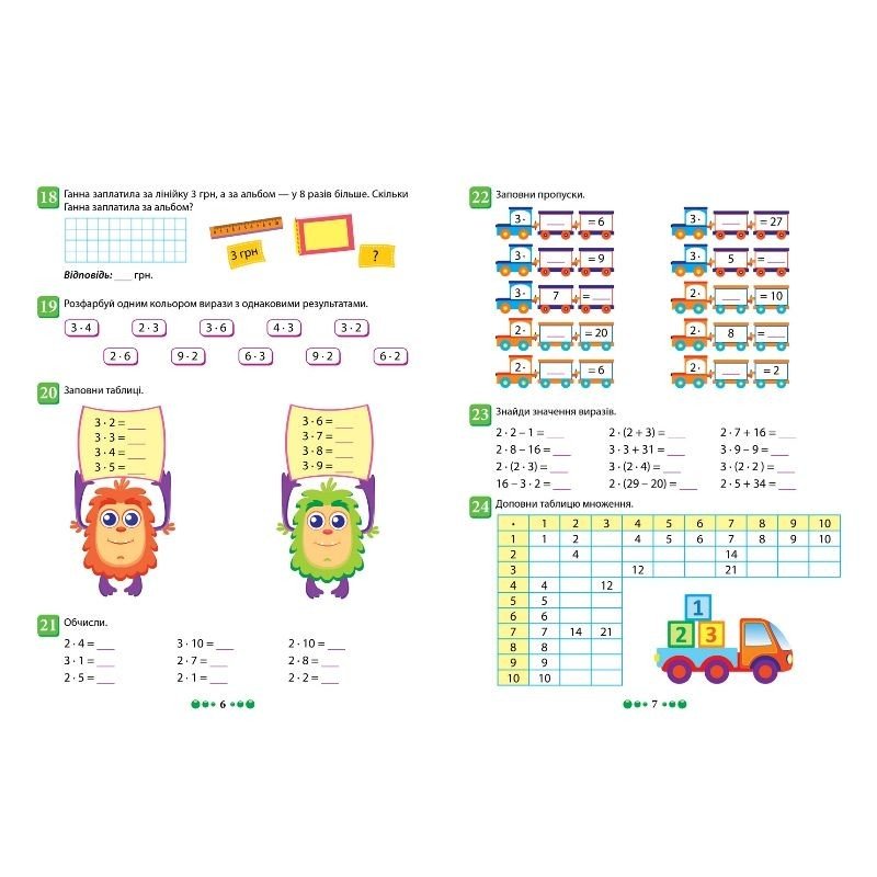 Запропонований зошит-практикум містить велику кількість вправ і задач на табличне та позатабличне множення і ділення, а також математичну гру. Тренувальний зошит призначений удосконалити обчислювальні навички дитини та розвинути вміння без проблем розвʼзувати різі види задач.