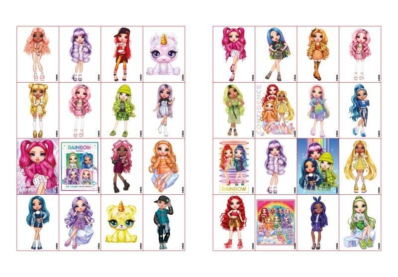 Комплектація: Що всередині? - 16 яскравих сторінок формату А4 (21х29 см) з розмальовками, завданнями, простором для малювання та кольоровими стікерами для самостійного використання; - активіті-формат, що залучає дитину до розв’язання логічних завдань, творчих вправ і креативних ігор; - захоплива подорож із улюбленими героїнями Rainbow, які надихають і мотивують.