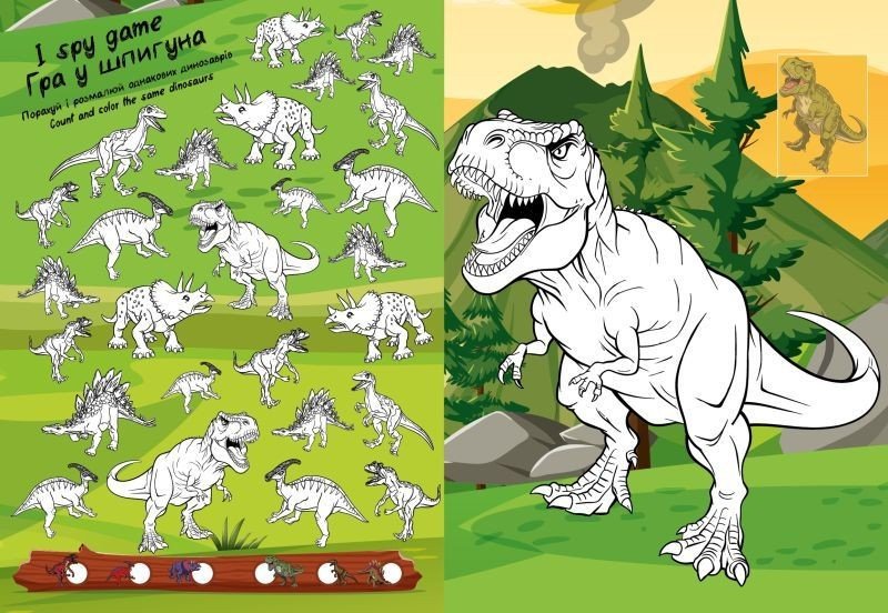 Вік: 4–8 років. Подаруйте дитині не просто книжку-розмальовку — подаруйте яскраву історію! Книжка-розмальовка зі стікерами - Світ хижих динозаврів для вашої творчості. Зроблено в Україні.