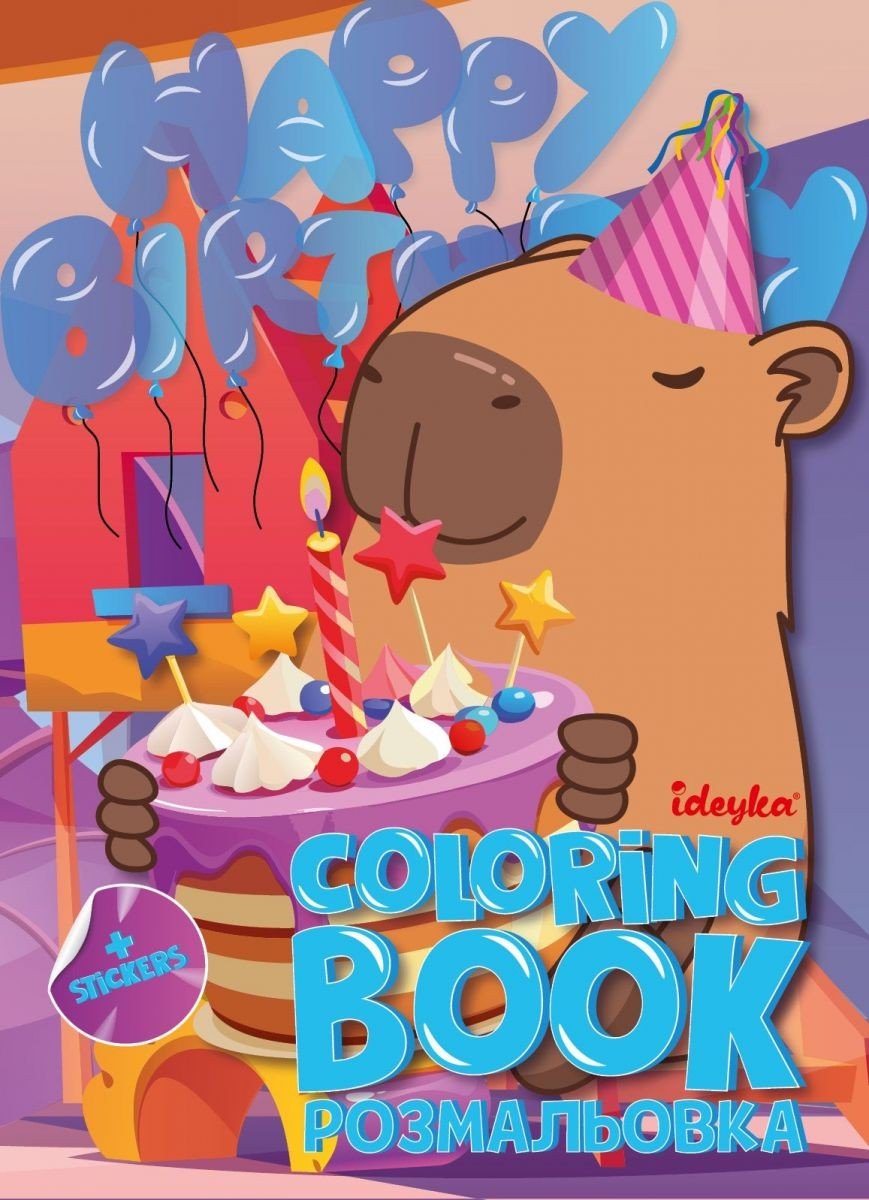Подаруйте дитині не просто книжку — подаруйте яскраву історію! Книжка-розмальовка зі стікерами - Свято капібари для вашої творчості. Зроблено в Україні.