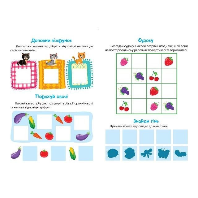 Ваша дитина любить розвʼязувати логічні задачі, проходити лабіринти, шукати відмінності, доповнювати малюнки або рахувати предмети? Тоді ця книжечка їй дуже сподобається. А "розумні" наліпки не тільки допоможуть зробити цікавим дозвілля, а й розвинуть логічне мислення, памʼять, увагу та кмітливысть малюка. 8 сторінок. Мʼяка палітурка.