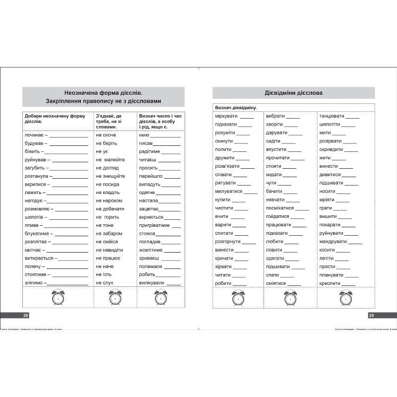 Мета цього тренувального зошита - навчити школяра писати без помилок. Для досягнення цього в посібнику підібрані вправи для тренування учнів, закріплення та використання на практиці правил української мови. За один раз пропонується виконати завдання одного стовпчика або блока. Після виконання всіх вправ у стовпчику, можна оцінити свої досягнення.