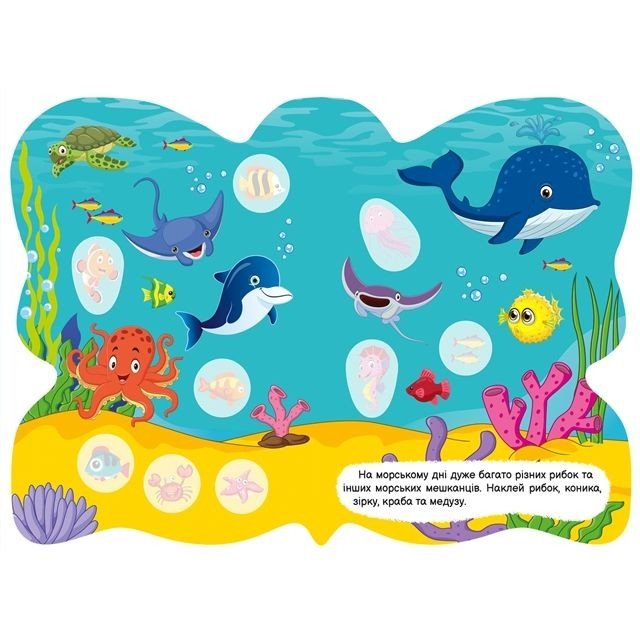 На сторінках даної книжки малюки зустрінуть улюблених тваринок і за допомогою наліпок поринуть разом із ними в дивовижні пригоди. Також яскраві наліпки допоможуть дітям потренувати дрібну моторику, розвинути увагу, уяву, логічне мислення та посидючість. В книжці 8 сторінок. В мʼякій обкладинці.