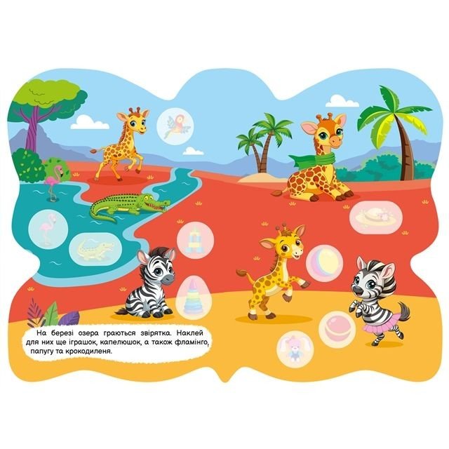 На сторінках даної книжки малюки зустрінуть улюблених тваринок і за допомогою наліпок поринуть разом із ними в дивовижні пригоди. Також яскраві наліпки допоможуть дітям потренувати дрібну моторику, розвинути увагу, уяву, логічне мислення та посидючість. В книжці 8 сторінок. В мʼякій обкладинці.