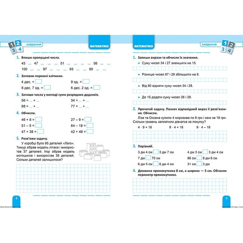 Дана книжка призначена для вдосконалення учнями початкових класів набутих під час навчання вмінь і навичок з математики, української та англійської мов. Тренажер містить велику кількість вправ з основних тем шкільного курсу 4 класу. 80 сторінок. В мʼякій обкладинці.