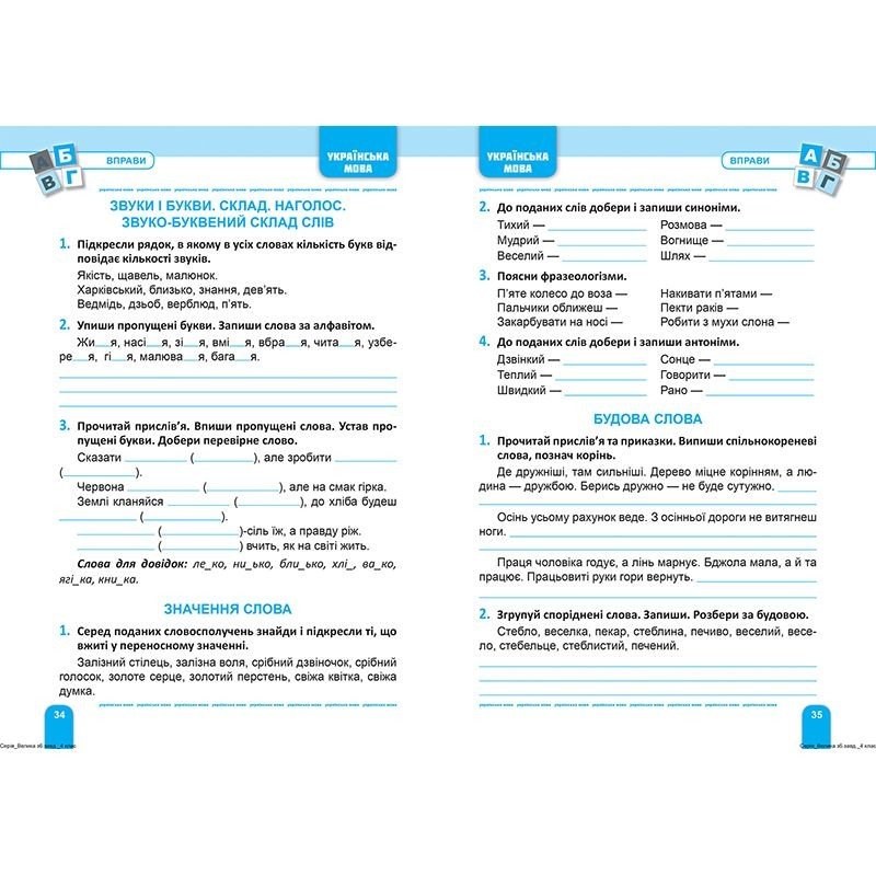 Дана книжка призначена для вдосконалення учнями початкових класів набутих під час навчання вмінь і навичок з математики, української та англійської мов. Тренажер містить велику кількість вправ з основних тем шкільного курсу 4 класу. 80 сторінок. В мʼякій обкладинці.