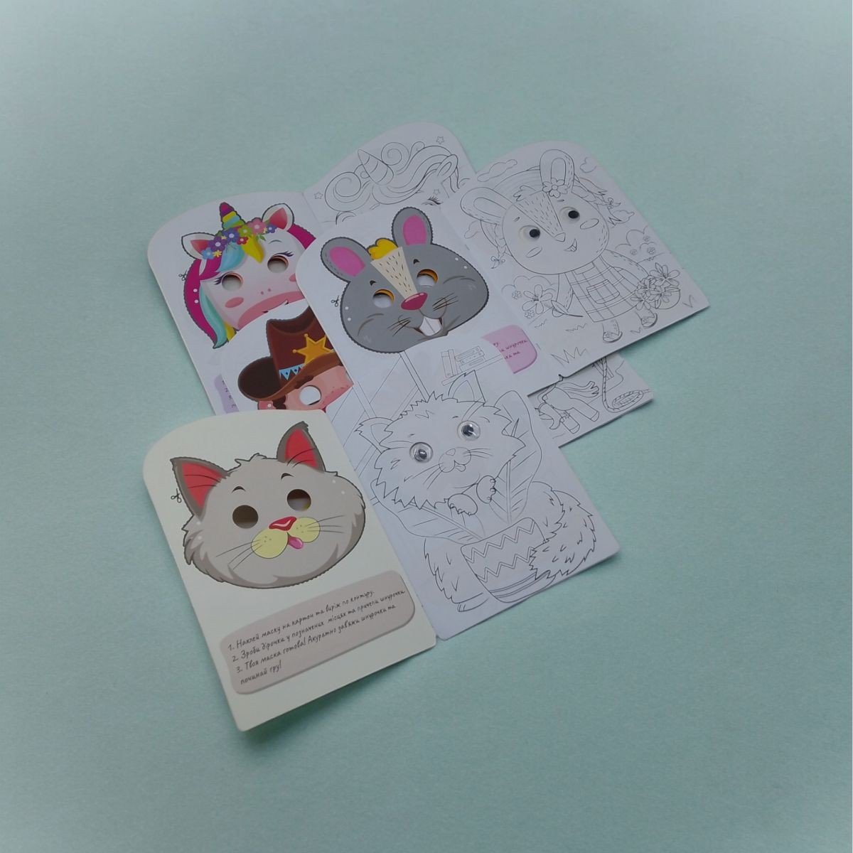 Книжка-розмальовка з очима на 18 сторінок подарує вашим дітям години веселої творчості та веселощів. У виданні передбачено 9 сторінок із різноманітними малюнками для розфарбовування, які допоможуть розвинути творчі навички та уяву. Також у книжці міститься 9 сторінок з масками, які легко вирізати та використовувати для ігор та костюмованих вистав.