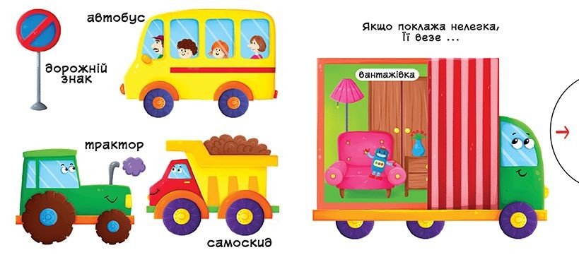 Опис Книжка з механізмамі.Едем, летимо, пливемо, укр