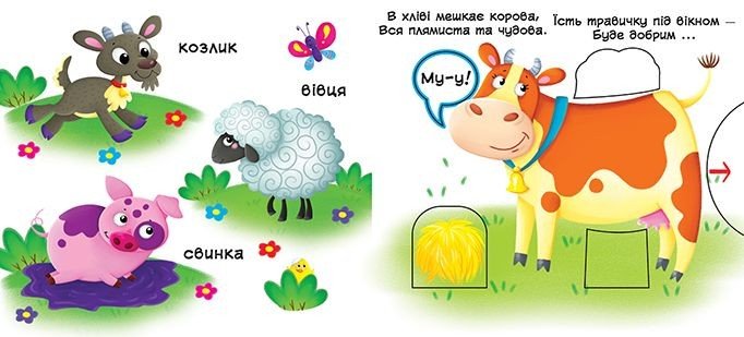 Книжка з механізмом. Домашні тварини. Рухай і крути механізми, знайомся з домашніми тваринами, відгадувати загадки, читай вірші. Виготовлений з картону.
