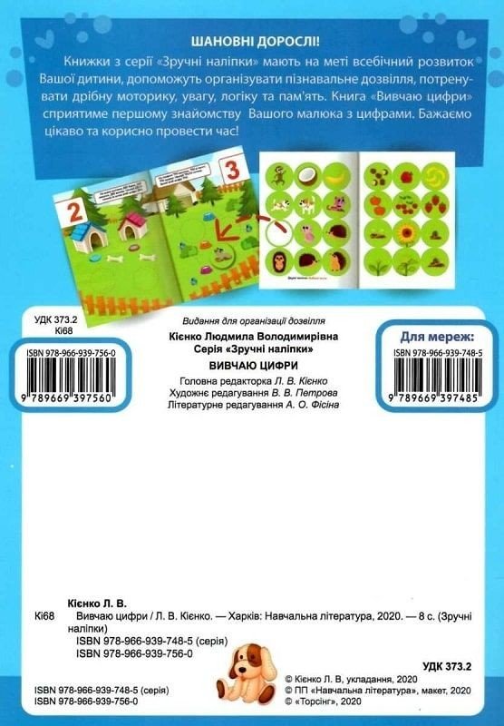 Книжки з серії "Зручні наліпки" мають на меті всебічний розвиток дитини, допоможуть організувати пізнавальне дозвілля, потренувати дрібну моторику, увагу, логіку, памʼять. Книга познайомить дитину з оточуючими її тваринами, предметами та явищами, тим самим розширюючи її кругозір. Мʼяка обкладинка, 14 сторінок.