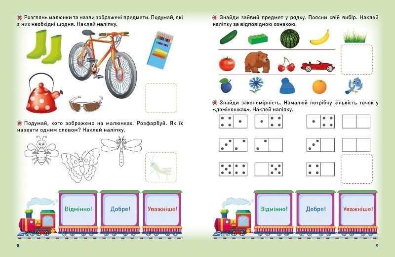 Книжки серії "Розумний дошкільник" націлені на розвиток у дитини інтересу до навчання. Малюк підготує руку до листа, легко вивчить цифри і букви, а так само з тренуватиме логічне мислення. Після виконання цікавого завдання на сторінці, дитина зможе оцінити результати своєї роботи за допомогою яскравих наклейок. Формат книжечки А4. 16 сторінок. Мʼяка обкладинка. Для дітей від 4-х років.