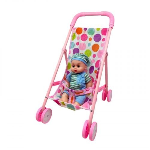 Коляска з пупсом та аксесуарами (РОЖЕВА В ГОРОШОК)