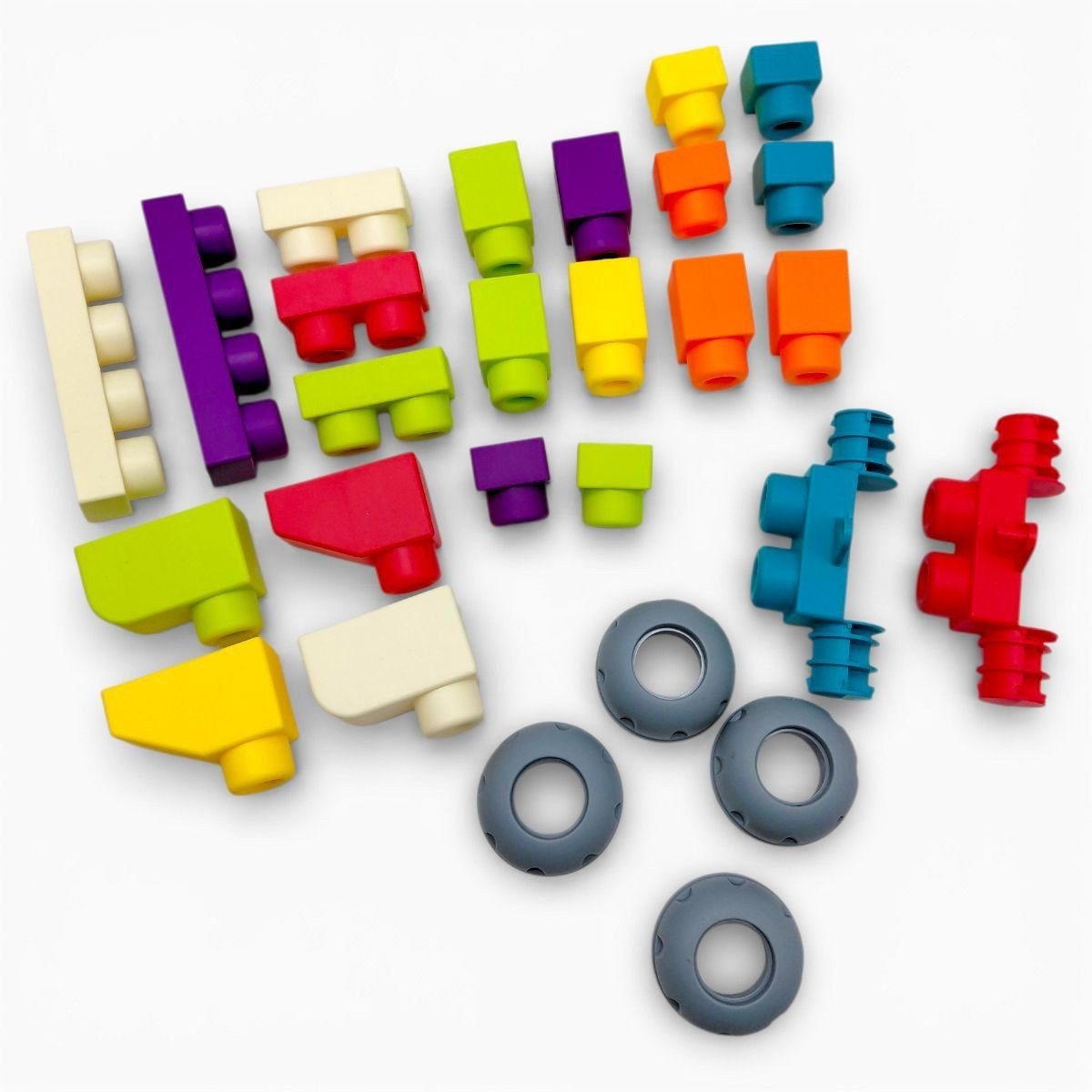 Конструктор HC Toys HC089G-01 – це розвивальний набір із 30 деталей із м’якого пластику, призначений для дітей раннього віку. Блоки мають зручний розмір для маленьких рук та безпечні краї. Деталі легко поєднуються між собою, що дозволяє створювати прості фігури, будиночки, транспорт та інші конструкції.