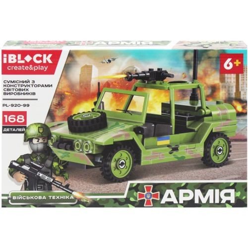 Набір конструктора із серії "Армія" складається із 168 деталей, за допомогою яких малюк зможе створити військову техніку. У комплекті є фігурки персонажів. Набір допомагає у розвитку логіки, дрібної моторики та просторового сприйняття. Деталі конструктора мають невеликий розмір, набір призначений для дітей віком від 6-ти років.