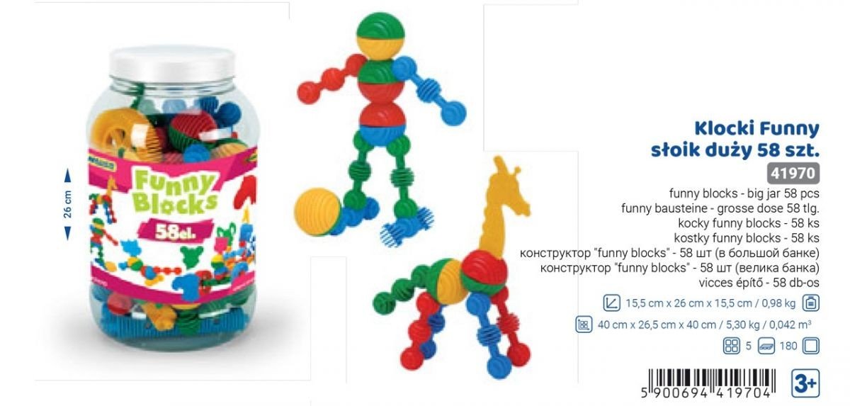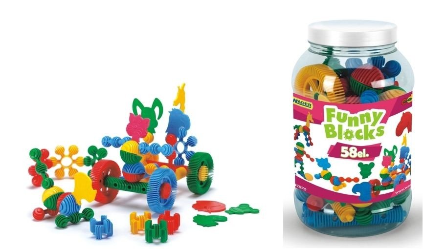Опис Конструктор "Funny blocks", 58 елементів, велика банка