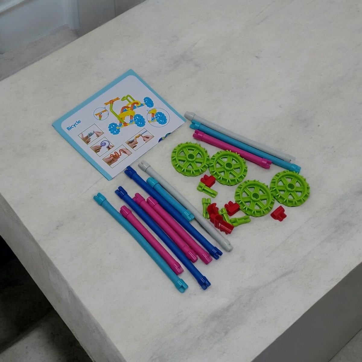 Гнучкий конструктор - це набір із 25 деталей, паличик легко згинаються, дозволяючи дітям створювати різноманітні фігури. За допомогою конструктора можна зібрати квадроцикл або проявити фантазію і створити щось унікальне. Мʼякі та безпечні деталі ідеально підходять для розвитку дрібної моторики та творчого мислення дитини!
