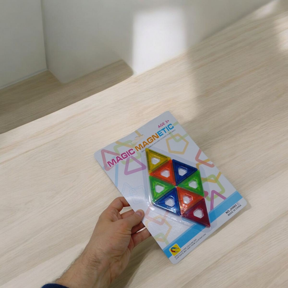 Магнітний конструктор включає 8 яскравих трикутних деталей, які легко зʼєднуються завдяки вбудованим магнітам. Ідеально підходить для розвитку уяви, конструкторських здібностей, дрібної моторики та просторового мислення у дітей. Розмір однієї деталі – 5,5 х 5 х 0,5 см.