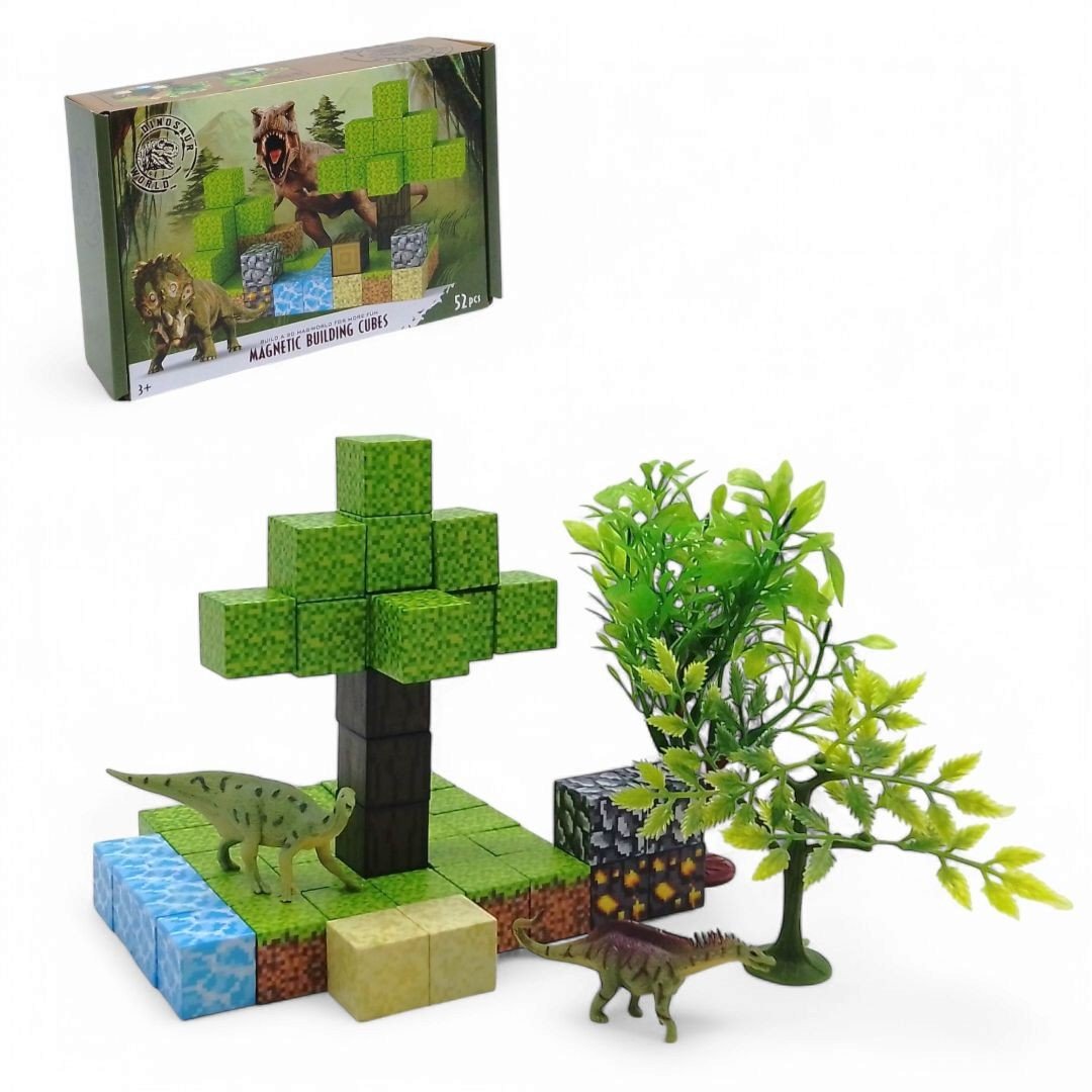 Опис Конструктор магнітний "Майнкрафт", з динозаврами, 52 деталі