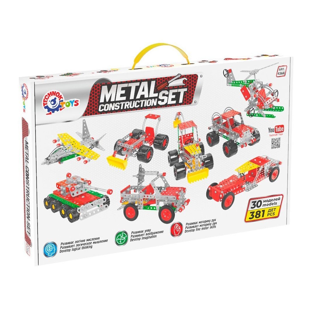 Конструктор металевий "МЕГА". Включає 381 деталь. А саме: кольорові металеві пластини, гвинти, болти і гайки, а також оригінальні деталі з пластмаси. Дитина зможе самостійно створити одну з 30-ти запропонованих моделей або створити свою власну.