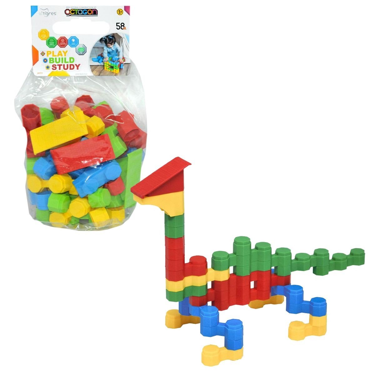Бренд: TIGRES Вік: 1 рік Упаковка: Сумка Колір: Різнобарв'я Вага з упаковкою: 700 г Габарити в упаковці: 15 x 21 x 30 см Країна виробник: Україна Матеріал: Пластик Комплектація: 58 елементів конструктора