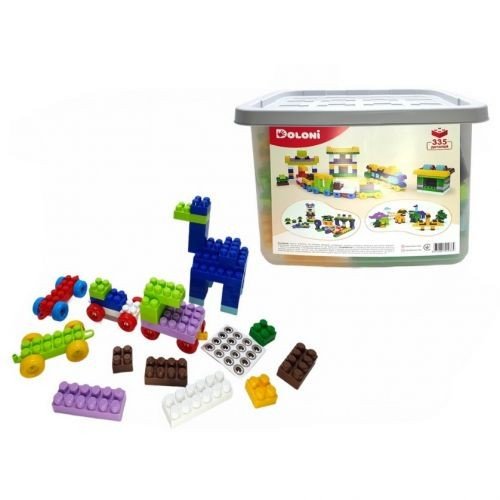 Опис Конструктор "Паркінг/Трек/Залізниця/Динозаври" 335 деталей у контейнері для зберігання
