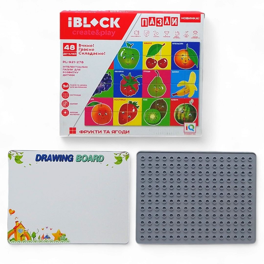 Бренд: iBLOCK Упаковка: Коробка Колір: Різнобарв'я Вага з упаковкою: 685 г Габарити в упаковці: 25 x 29 x 6.5 см Країна виробник: Китай Матеріал: Пластик Комплектація: 48 деталей пазла, 2 маркера